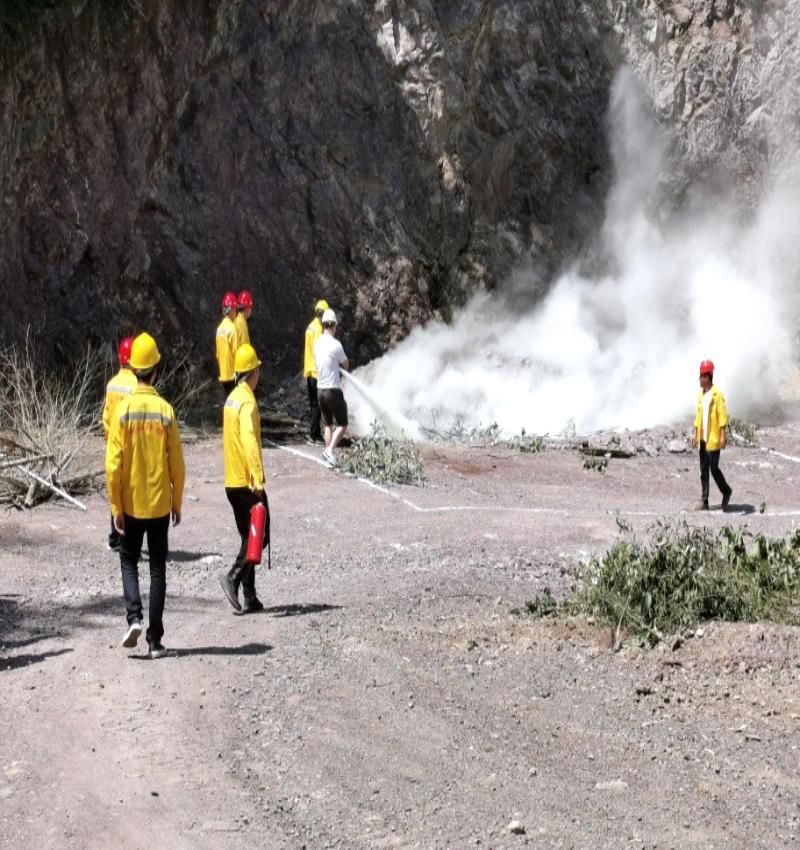 當日下午2點30分,在得到河上鎮人民政府的許可下,由項目演習總指揮李鐵振下達開始指令,現場人員在預設點進行點火,現場施工人員及時發現火情,當即報告班組負責人,班組負責人立即通知項目部管理人員并啟動森林防火應急預案。參演人員隨后攜帶滅火器具立即進場滅火,先投擲滅火彈對火情進行控制,隨后使用干粉滅火器對火源進行進一步處理,最后成功撲滅火勢。在確?;鹧娌粫腿嫉那疤釛l件下,工作人員撤出現場,由現場機械對演習現場進行清理,同時工作人員對參演人員、器具及周邊環境進行再一次復查,確認無誤后,演習完畢。