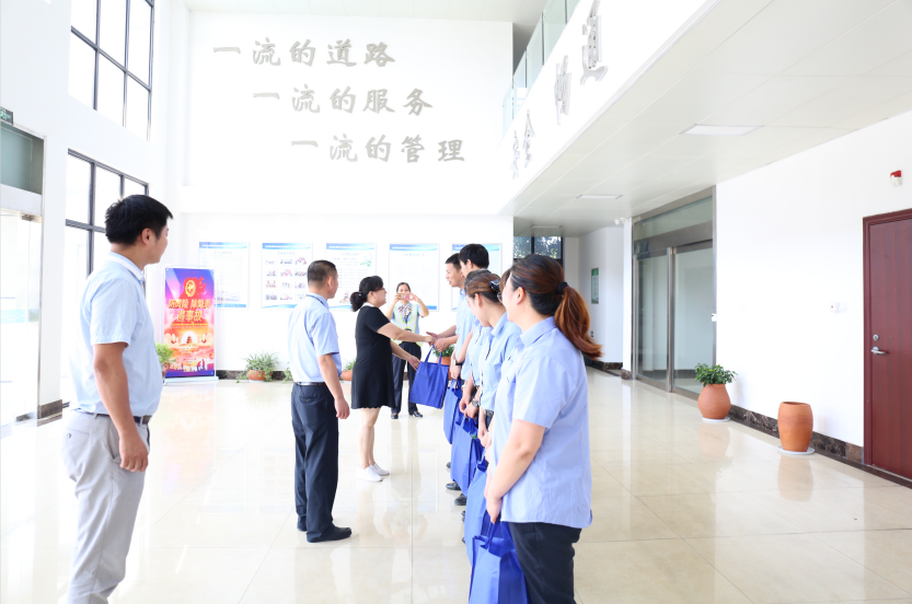 7月28日上午,公司領(lǐng)導(dǎo)班子到各站點慰問了一線員工,在工作現(xiàn)場,領(lǐng)導(dǎo)們?yōu)橐痪€收費員送上了夏季清涼用品等慰問品,并親切詢問了一線員工們的作息時間和生活狀況,對大家高溫天氣下堅守崗位的精神表示高度贊揚,同時叮囑大家要做好防暑降溫措施,合理安排休息時間,保持良好的精神狀態(tài),在做好文明服務(wù)的同時,確保現(xiàn)場工作有序暢通。