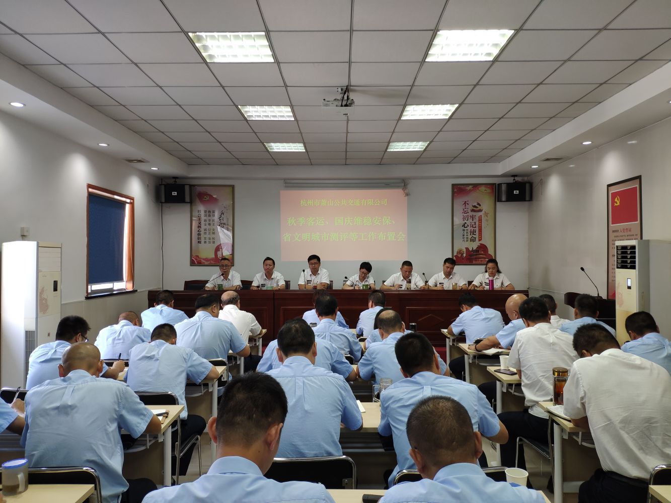 2019年9月20日,蕭山公交公司在一樓會(huì)議室召開近期重點(diǎn)工作布置會(huì),傳達(dá)集團(tuán)會(huì)議精神,部署秋季客運(yùn)、國慶安保維穩(wěn)、省文明城市測(cè)評(píng)等近期重點(diǎn)工作,進(jìn)一步明確各項(xiàng)工作目標(biāo)要求。公司全體班子成員、全體中層參加會(huì)議。會(huì)議由張國棟總經(jīng)理主持。