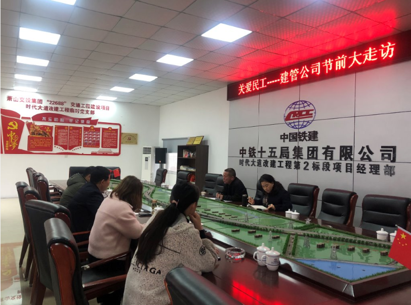 座談會(huì)上,各項(xiàng)目負(fù)責(zé)人匯報(bào)了各自標(biāo)段目前的民工工資支付情況和春節(jié)民工返鄉(xiāng)情況,在返鄉(xiāng)情況中具體詢問了返鄉(xiāng)民工人數(shù),返鄉(xiāng)民工購票等情況。在留守民工情況中,具體詢問了他們的值班分工和項(xiàng)目部春節(jié)期間活動(dòng)安排等。