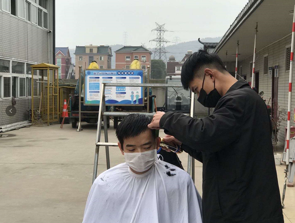 此外項目積極開展安全教育培訓(xùn)和防疫宣傳工作,制作了防疫防護口袋書和復(fù)工防疫手冊發(fā)放到每個管理人員和班組手中。且為避免人員聚集實行分批次培訓(xùn),科學(xué)有序的組織民工隊伍進場復(fù)工。項目還開展了愛心義務(wù)理發(fā)活動,為抗擊疫情堅守崗位的員工、員工家屬及民工隊伍人員免費理發(fā)。面對疫情我們努力做到嚴防死守,有序推進復(fù)工復(fù)產(chǎn),把防疫復(fù)工兩手抓落到實處。