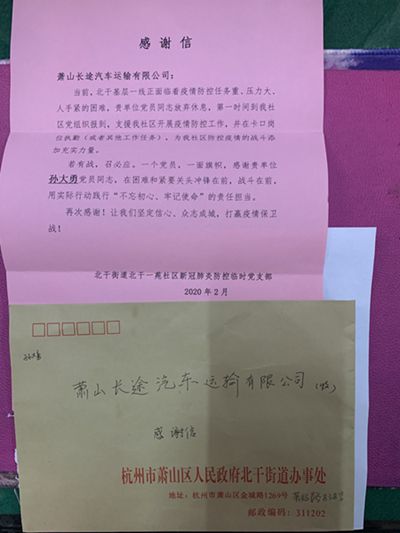 近日,蕭山長(zhǎng)運(yùn)公司黨委下屬客運(yùn)黨支部收到一封來(lái)自北干街道北干一苑社區(qū)新冠肺炎防控臨時(shí)黨支部送來(lái)的感謝信,對(duì)黨員孫大勇同志積極支援社區(qū)開(kāi)展疫情防控工作表示感謝。