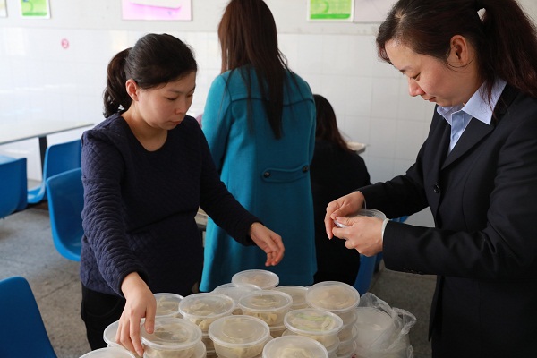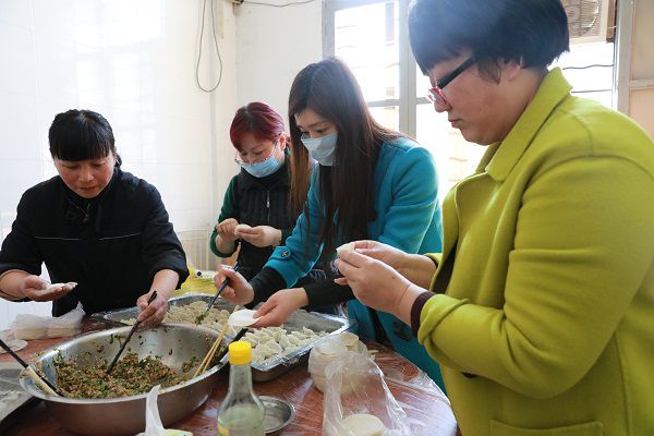 3月3日一早,長運(yùn)公司婦委的工作人員就在公司食堂忙活開了。面粉、香油、豬肉、大白菜等材料鋪了滿滿一桌子。剁菜、拌餡、發(fā)面,一個個儼然都是行家里手。準(zhǔn)備工作做完了,接下來就是包餃子。婦委分管領(lǐng)導(dǎo)、公司副總經(jīng)理陳強(qiáng)自詡是個“吃貨”,不僅會吃也會做,一出手就把大家給鎮(zhèn)住了——她包的水餃不但又快又好,還分四種花色!其他女職工們也不甘落后,一上午下來總共做了1000多只水餃,有芹菜豬肉餡的,也有韭菜豬肉餡的。熱心的食堂師傅幫著鋪上紗布,將一只只餃子整整齊齊地排好。很快,熱騰騰的蒸餃出爐了,芹菜和韭菜的香味彌漫了整個食堂。