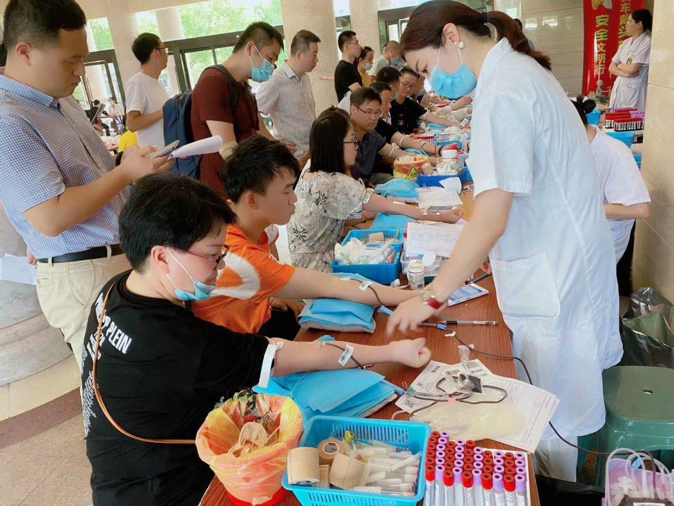 經(jīng)過前期的宣傳、發(fā)動,本次獻血活動得到了大家的積極響應(yīng),干部職工紛紛踴躍報名,希望通過捐一份熱血、獻一片愛心。活動現(xiàn)場出現(xiàn)了許多獻血的“老面孔”也有首次參與的“新生力量”,大家通過“紅色紐帶”傳遞人間真情,以實際行動履行社會責任。