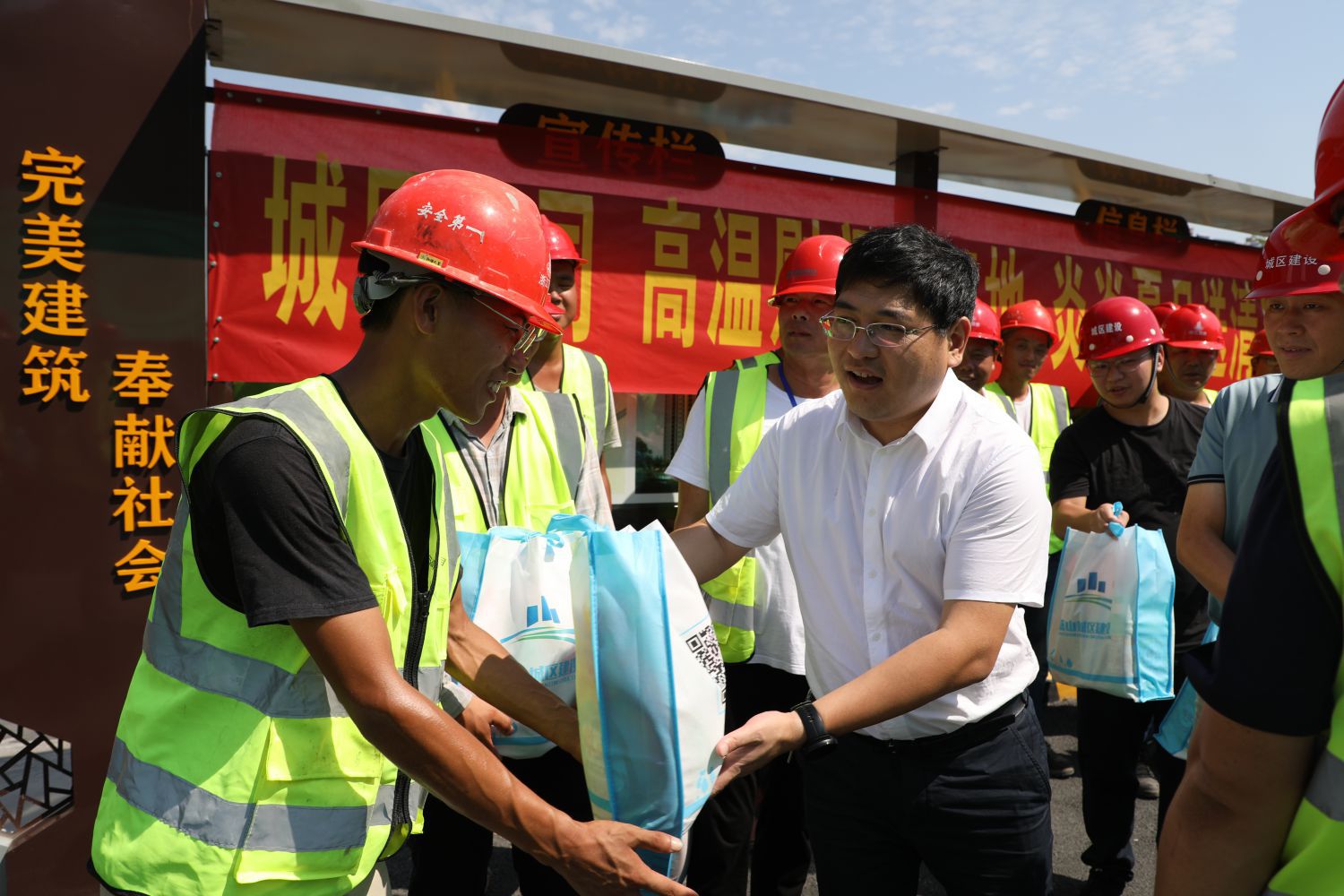 為進(jìn)一步做好今年夏季一線勞動(dòng)保護(hù)和防暑降溫工作,8月11日,集團(tuán)黨委副書(shū)記、總經(jīng)理徐寧軍帶隊(duì)赴各在建項(xiàng)目現(xiàn)場(chǎng),向高溫下奮戰(zhàn)在一線的建設(shè)者表示慰問(wèn)。