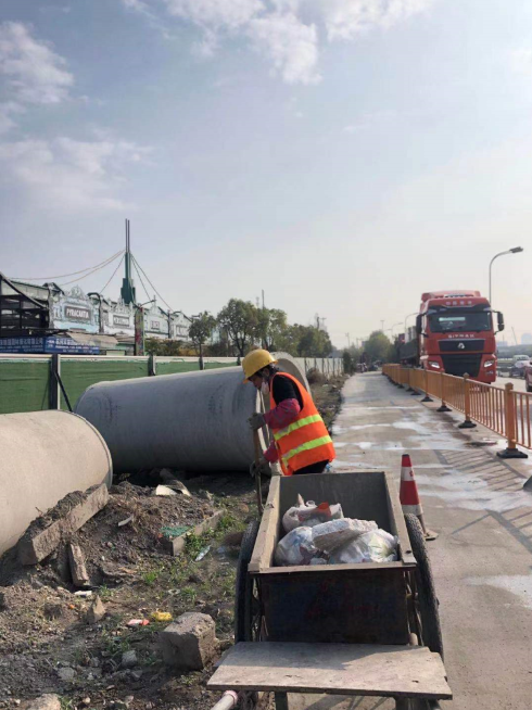 目前在建道路都為線形工程,路線長,路況復雜、涉及邊通車邊施工以及交通導改等影響,為環境集中治理和管控帶來了很大的難度。第一靶向目標,委托專業保潔力量。委托專業保潔單位蕭山路橋公司,跟進時代大道改建工程和03東復線高架南延項目建設進度,確保道路保潔工作,并設置常規和動態兩套保潔方案。第二隨時出發,定點定位節約成本。公司總控室安裝了鷹眼跟蹤系統,派專人進行道路路況管控,在關鍵的幾個道路點位設置了攝像頭,將目標鎖定,減少了人員誤判率,提高了出勤率和保潔率。第三克難攻堅,保我優良交通環境。自2019年12月進場以來,保潔人員每日24小時,克服高溫酷暑,強雨嚴冬,行走在繁忙的車道邊,平均每人每天行走十幾公里以上,實施對圍擋以外的路面保潔、坑洞修補、城市護欄維護等工作,竭力確保環境的整潔和行車的通暢。第四持之以恒,加強設施隊伍建設。目前共投入保潔人員103余名,灑水車13輛,清掃車3輛,護欄沖洗車2輛、高壓沖洗設備42套、霧炮機34臺等設備,累計修補路面坑洞約23728平方米,大大提升了時代大道改建工程和03東復線高架南延項目的揚塵管控,以及道路安全和良好通行。