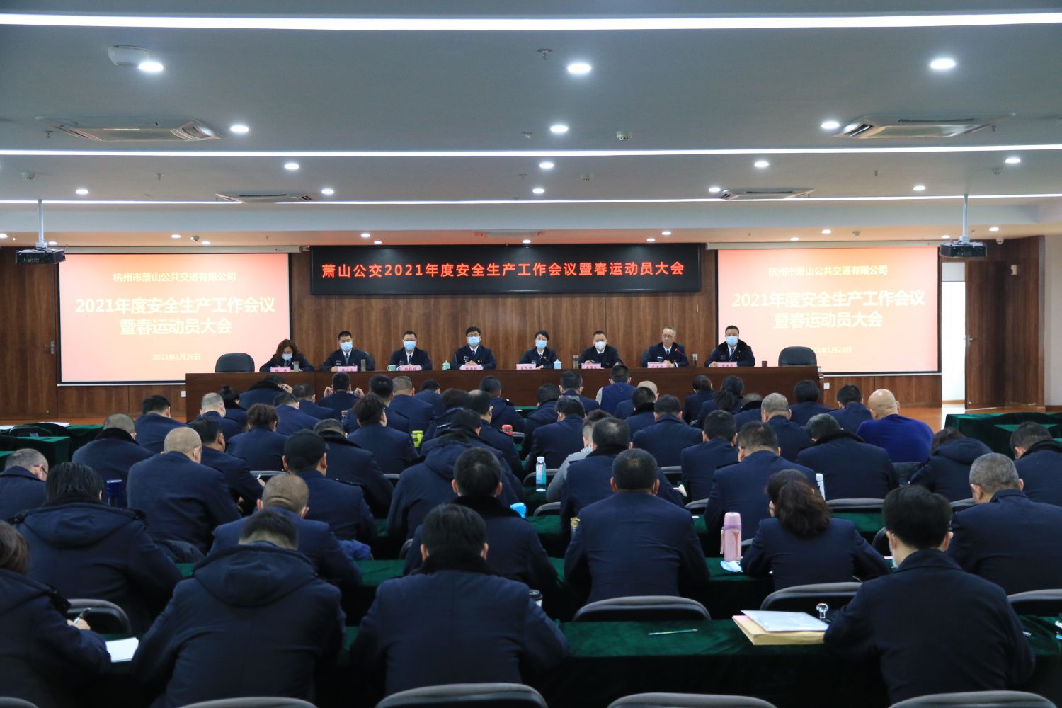 1月26日下午,公交公司在506會議室召開“2021年度安全生產工作會議暨春運動員大會”,傳達集團專題會議工作要求和上級領導重要講話精神,動員部署公司安全生產和年度春運保障工作。公司全體班子成員、全體中層參加會議。會議由張國棟總經理主持。會上,各位分管副總對2021年安全生產工作及春運保障進行動員部署。張國棟總經理分別與各部室、各車隊、分公司責任人簽訂《春運安全行車管理目標責任狀》。