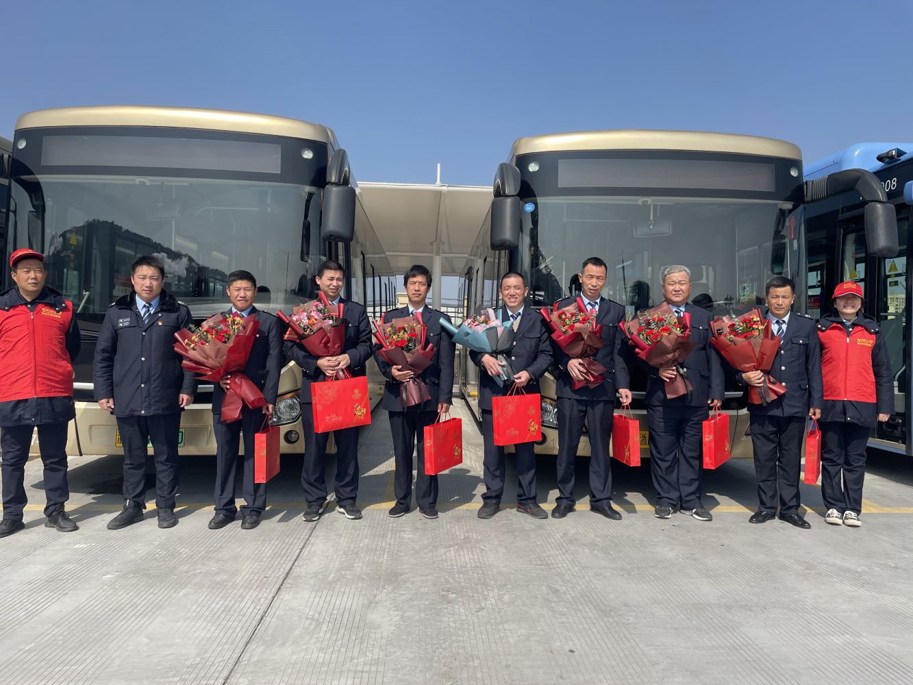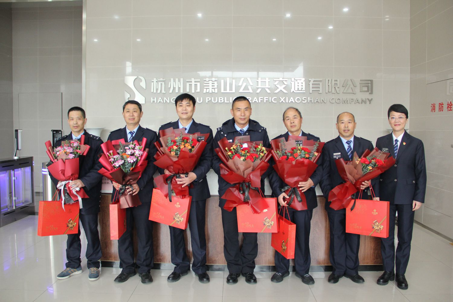 在蕭山公交總部大廳活動現(xiàn)場,公司黨委書記、工會主席王黎洪代表公司為“雷鋒”司機們一一送上鮮花和紀(jì)念品,并對大家長期以來在一線崗位中弘揚真善美、傳播正能量的奉獻(xiàn)精神表達(dá)了感謝和敬意,現(xiàn)場花香四溢,氣氛熱烈。隨后下屬各單位紛紛響應(yīng)號召,兵分八路向30余名奮戰(zhàn)在各個崗位的公交“活雷鋒”送去鮮花和敬意。