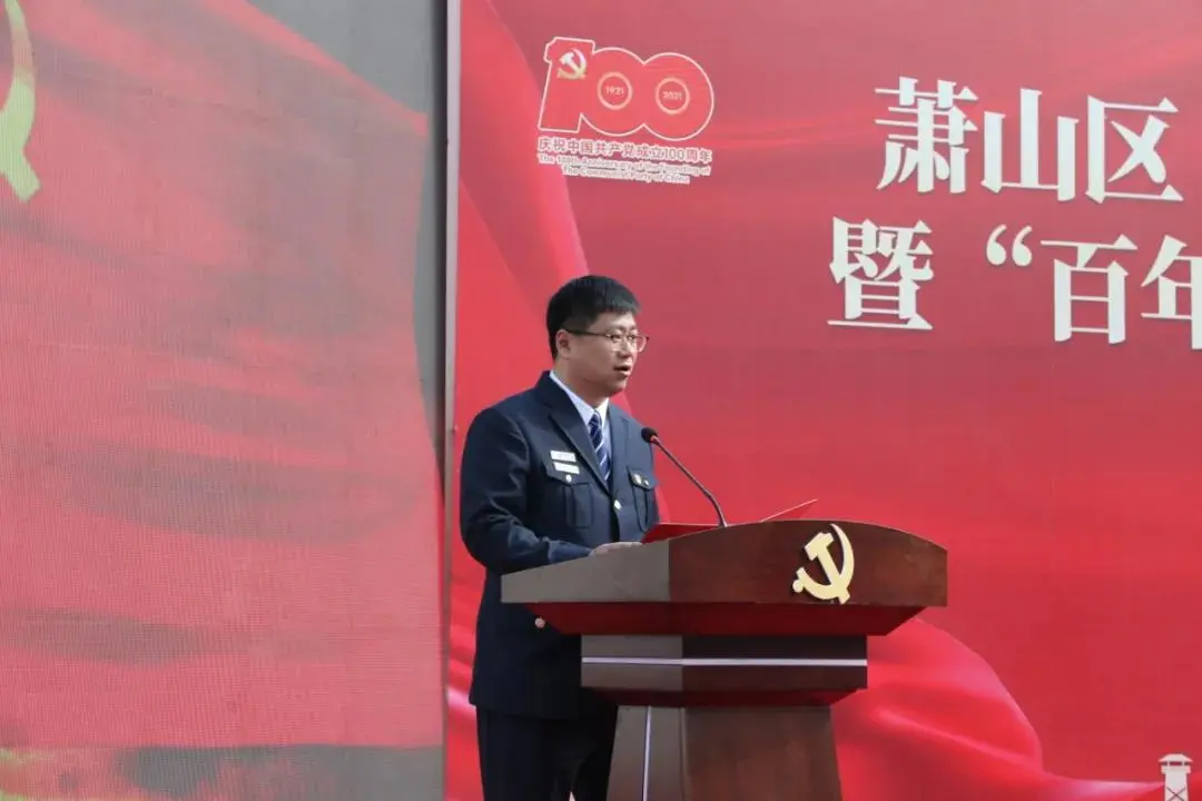 蕭山區黨史學習教育領導小組辦公室副主任、區委宣傳部副部長許寶良,區委黨史研究室主任徐燕鋒為“紅色史者”授聘書、贈蕭山黨史書籍。
