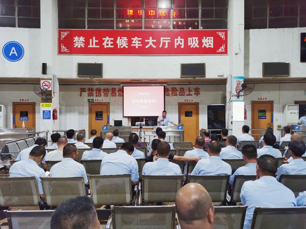 為建黨百年平安護航,結合全國第20個安全活動月,6月3日晚,客運分公司在汽車總站候車大廳開展安全教育培訓,全體駕駛員參加,由分公司副經理黃曉健為本次的培訓授課。