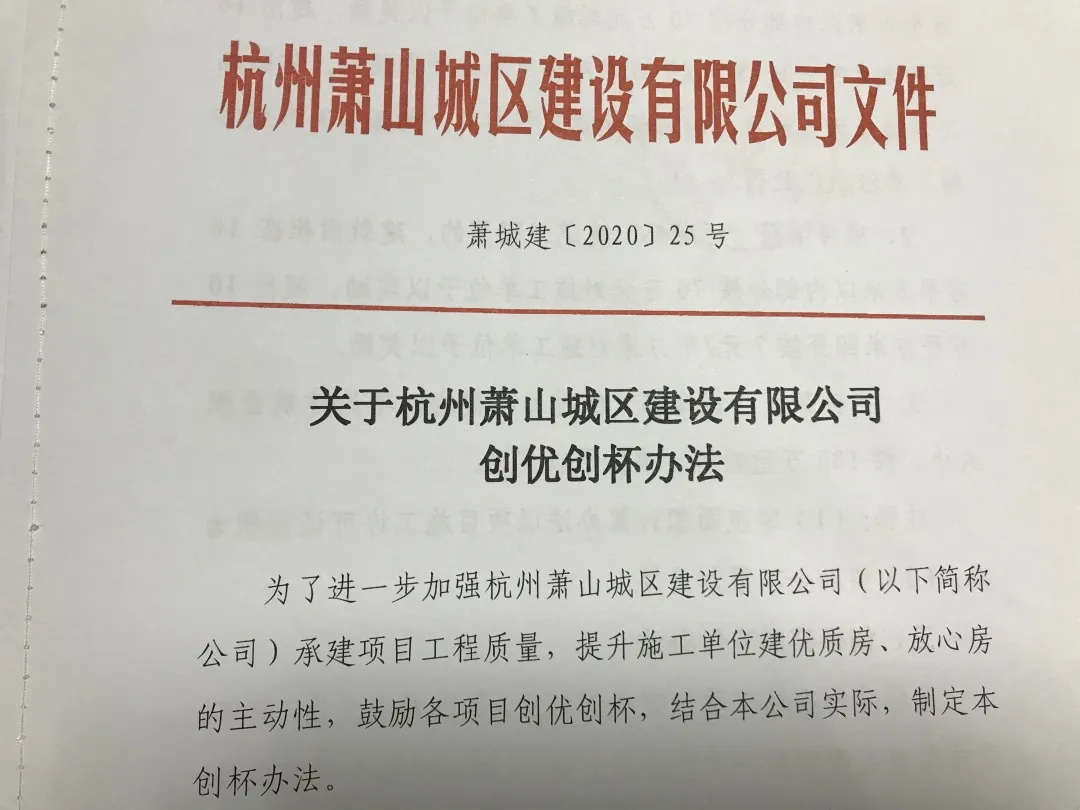 蕭城建〔2020〕25號 關于杭州蕭山城區建設有限公司創優創杯辦法