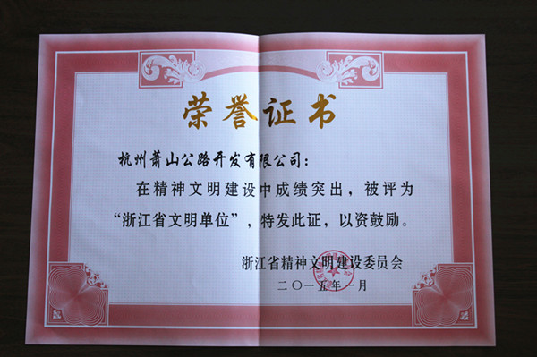 近日,中共浙江省委、浙江省人民政府下發(fā)了《關(guān)于命名2014年度省級文明單位的決定》, 公路開發(fā)公司被授予省級文明單位稱號。