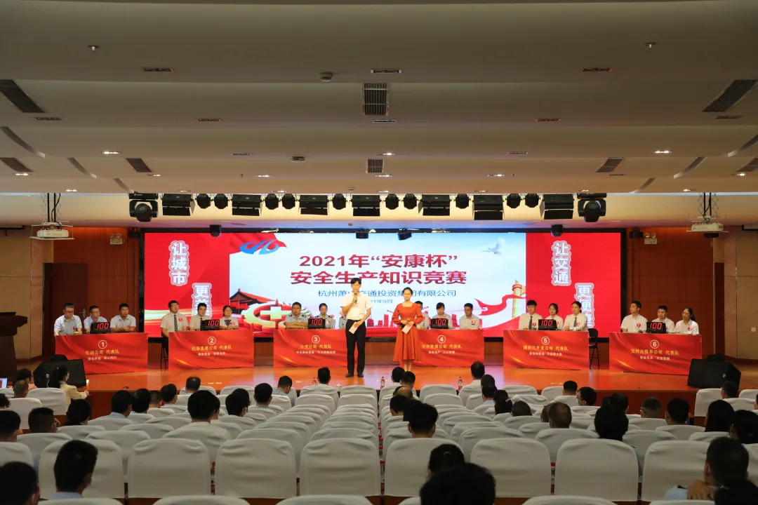 為宣傳貫徹新《安全生產法》,普及安全生產法律法規,培育安全生產法治文化,營造學法用法守法濃厚氛圍,增強全員安全責任意識,打造“平安交投”品牌形象,9月28日下午,集團2021年 “安康杯”安全生產知識競賽決賽舉行。集團黨委副書記、總經理徐寧軍,黨委委員、紀委書記郭維濤,副總經理鐘波出席會議并擔任評委。集團各部室負責人,所屬各單位黨組織、行政負責人,安全生產分管負責人及相關管理人員、一線職工代表150余人觀摩競賽。