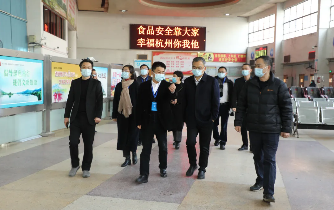 在蕭山汽車總站,姜永柱仔細檢查了車站出入口、候車大廳、下客防疫卡點的疫情防控工作落實情況。