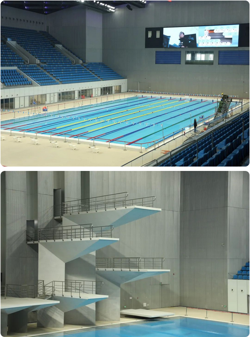 游泳館為亞運會游泳、跳水、花樣游泳項目比賽場館及訓練場館,位于杭州奧體中心北端。總建筑面積53959平方米,約6000座,是一個集游泳跳水比賽和訓練為一體的專業運動場館。