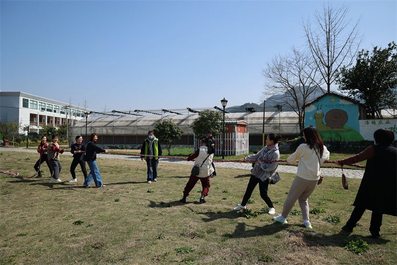 浩楠四季果園位于杭州市蕭山區河上鎮東山村,這里地勢平坦,資源豐富。是集“可覽、可游、可居”的環境景觀和“自然----生產----教育----休閑----康樂”于一體的綜合休閑區。鹿園美景閱不盡,最愛春色添紅妝,亞運會召開在即,為調動大家的運動熱情,此次活動精心籌備了拔河比賽、毛毛蟲比賽、積木過河等項目,充分調動了女員工的積極性和能動性,為亞運添彩。