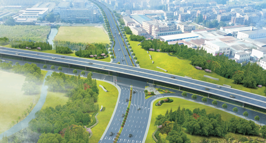 (機(jī)場(chǎng)互通-緯二路匝道)長約6.9公里,車道寬約51米。