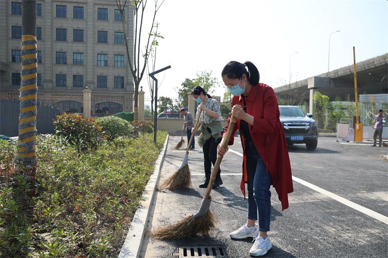 此次黨日活動主題為“迎亞運 ——志愿保障服務”,同時響應即將到來的國際“五一”勞動節。黨員志愿者們致力于維護亞運會保障工程的美潔,紛紛拿出工具清掃起來。頂著將近30度的太陽,189個車輛停車位上的落葉及白色垃圾在15名黨員和入黨積極分子志愿者的共同努力下,耗時50分鐘就清理完畢,呈現出光鮮亮麗的形象。