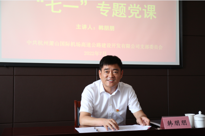 近日,機場高速公司黨支部開展7月主題黨日活動,本次活動特邀集團黨委委員、副總經理韓朋朋為全體黨員、入黨積極分子授專題黨課。黨群部經理高祎欽陪同參加。