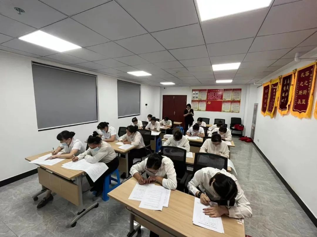 理論考試意在考核客服基礎知識及公司應知應會內容。在宣布比賽開始后,參賽選手們立即進入答題狀態,時而冥思苦想,時而奮筆疾書。大家爭分奪秒,一絲不茍。考試結束后,評審人員根據客服題庫標準答案及公司應知應會進行評分。