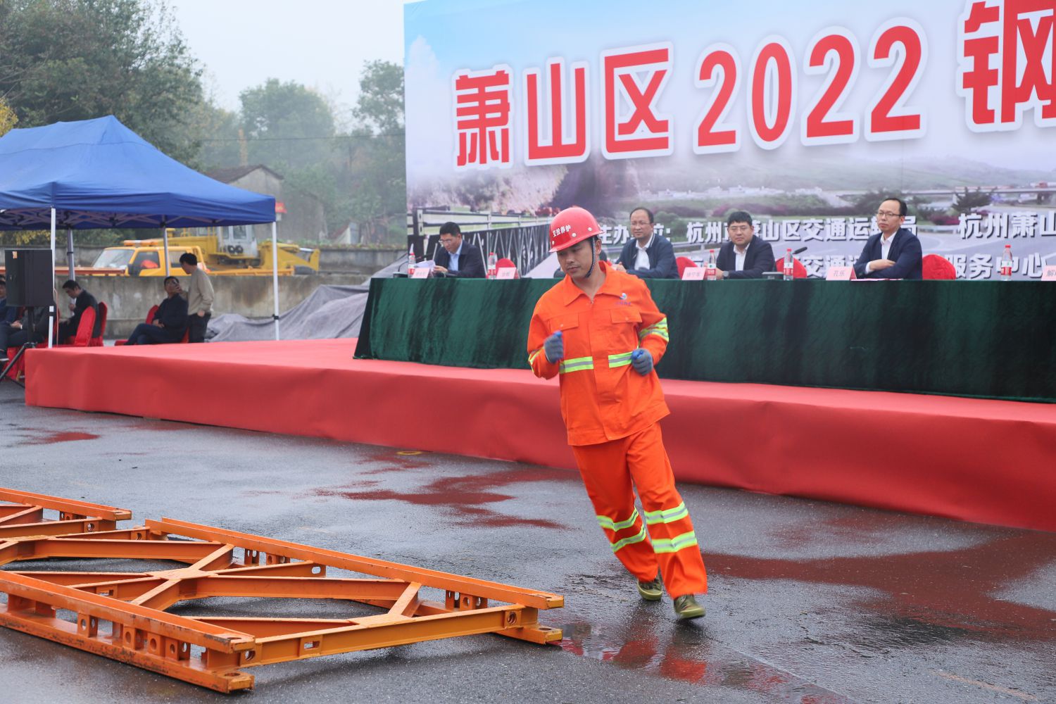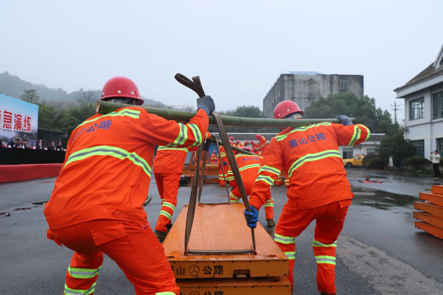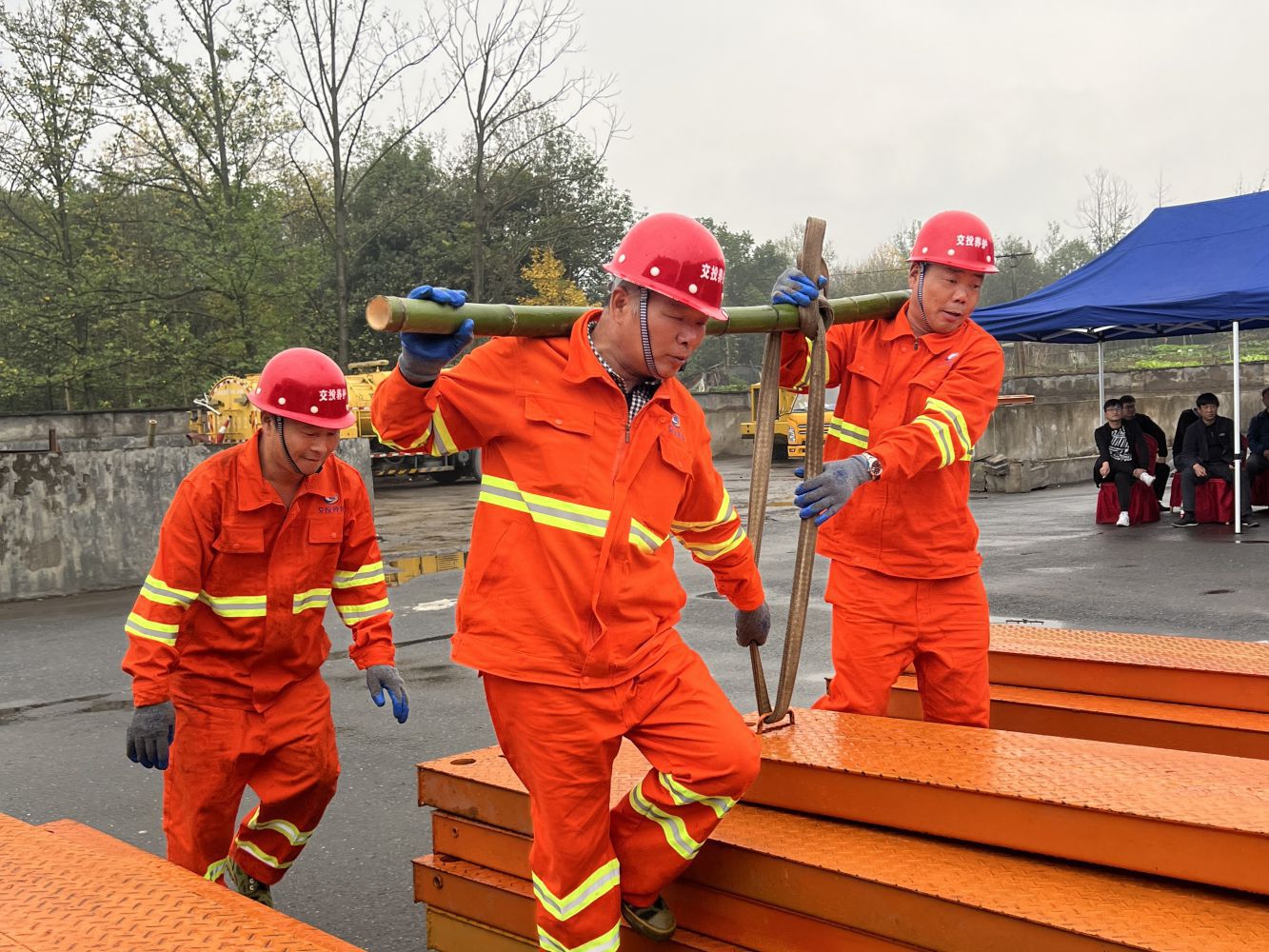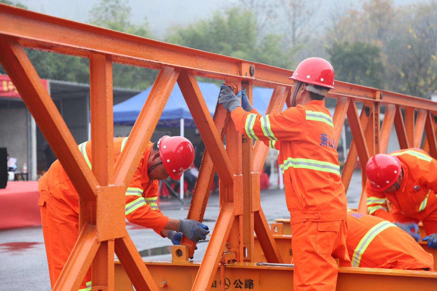 立桁架、豎支撐、架橫梁、鋪橋面板……11月22日下午,在蕭山交投公路養(yǎng)護服務有限公司樓塔道班內,30名訓練有素的應急搶險隊員,在20分鐘內架設起一座跨徑為12米的321型裝配式公路鋼橋,展現了熟練的橋梁架設技能。