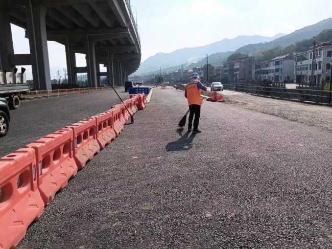 時代大道高架南延(繞城至三環段)項目作為南片主干道之一,串聯著杭州主城區、濱江區、湘湖新城、蕭山南部片區,每日交通流量大,且多數為大型的自卸車輛,給道路造成不同程度的損壞,為全面貫徹落實“美麗蕭山”創建暨“‘迎亞運’城市大環境整治、城市面貌大提升”工作要求,為確保道路的通車安全和順暢,該項目組建道路保障隊伍破損路面動態養護,為避免交通擁堵,精心組織,錯峰施工或安排在夜間施工,保障了通車效率,共修復路面約4000平方米。
