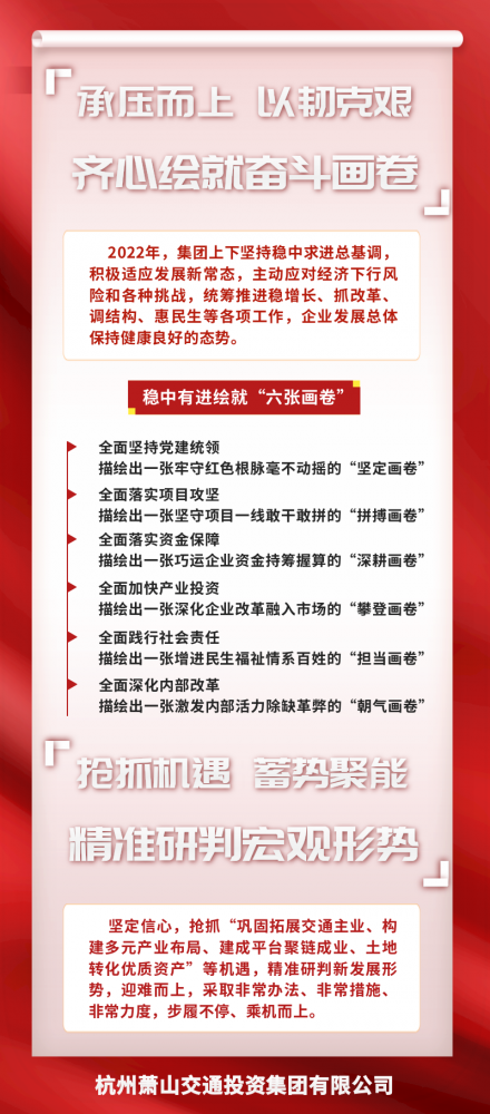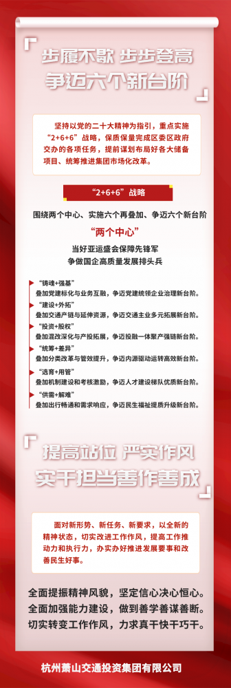 蕭山交投集團作為我區(qū)交通建設主力軍,在全區(qū)各項重點任務的大考大戰(zhàn)中展現(xiàn)出敢于擔當、敢于攻堅、善作善成的奮斗姿態(tài),“發(fā)展快,效能高”、“任務重,站位高”、“轉(zhuǎn)型快,覺悟高”、“作風硬,情懷高”,工作值得肯定。