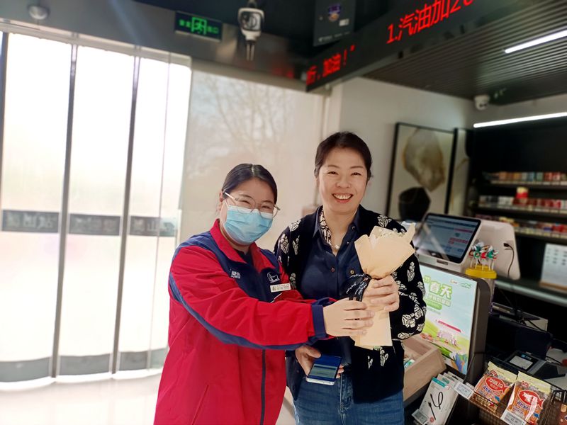 一大早節(jié)日的氣息便撲面而來(lái),作為活動(dòng)主陣地的各加油站,準(zhǔn)備了一束束漂亮的香檳玫瑰,喜迎往來(lái)顧客,為今日來(lái)站消費(fèi)的女顧客們送上美麗的鮮花和節(jié)日的美好祝福。“早上就有驚喜!美好的心情一下子就有了!”收到鮮花的女顧客們開(kāi)心地向加油員們道謝,并祝女同胞們節(jié)日快樂(lè)。公司婦聯(lián)也在今天上班的第一時(shí)間為兩位女領(lǐng)導(dǎo)及行政女員工們送上了漂亮的鮮花和節(jié)日的問(wèn)候。