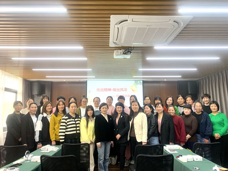 活動(dòng)特邀高級(jí)國(guó)際形象設(shè)計(jì)師Annie-戴到公司來(lái)為女員工們上一堂化妝課,戴老師通過(guò)多媒體講解和現(xiàn)場(chǎng)示范操作,手把手地教會(huì)大家日常通勤妝的化法。活動(dòng)現(xiàn)場(chǎng)氣氛熱烈,女員工們聽(tīng)得津津有味,這場(chǎng)關(guān)于煥發(fā)美麗容顏的課程深受大家歡迎。