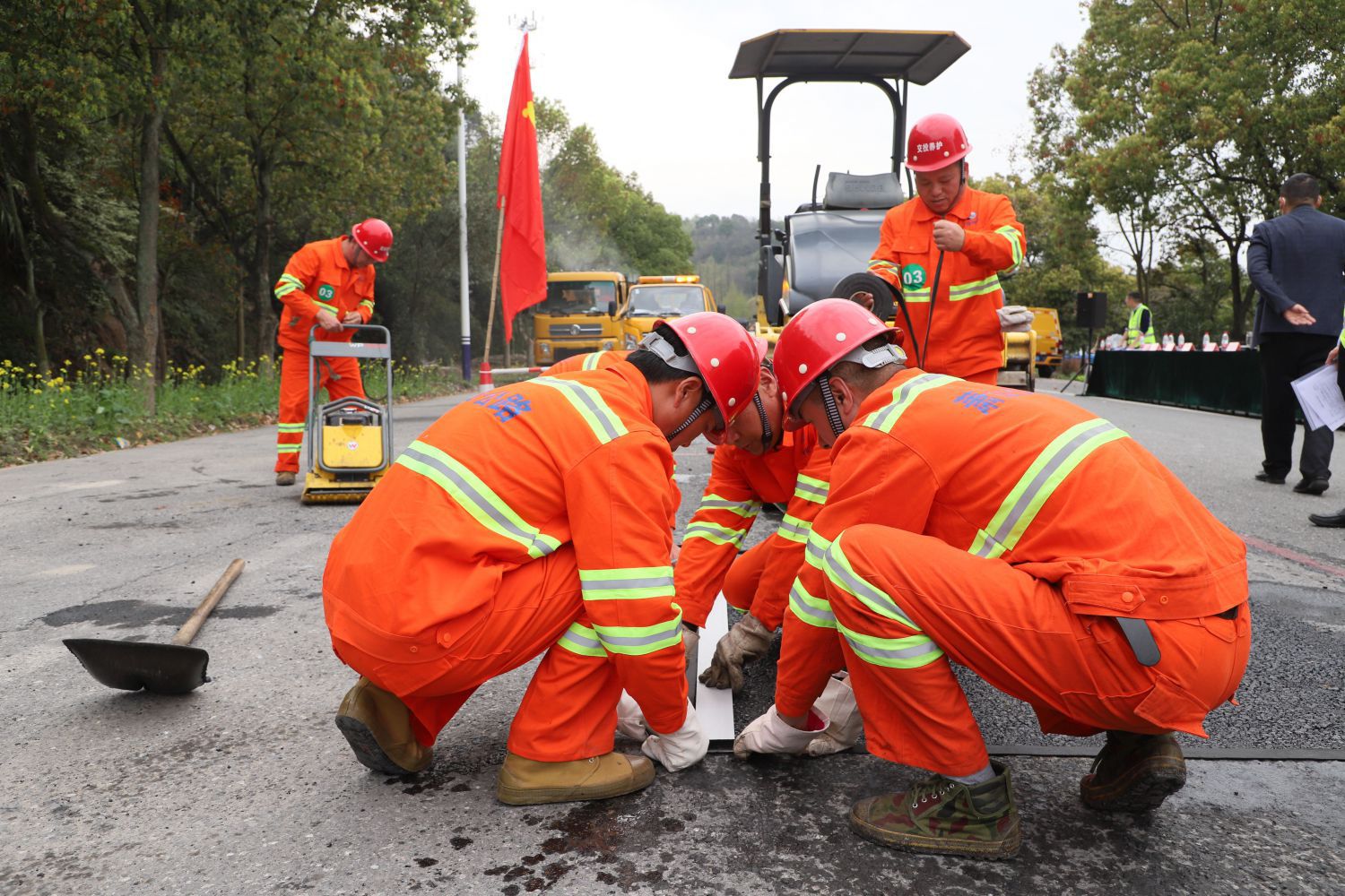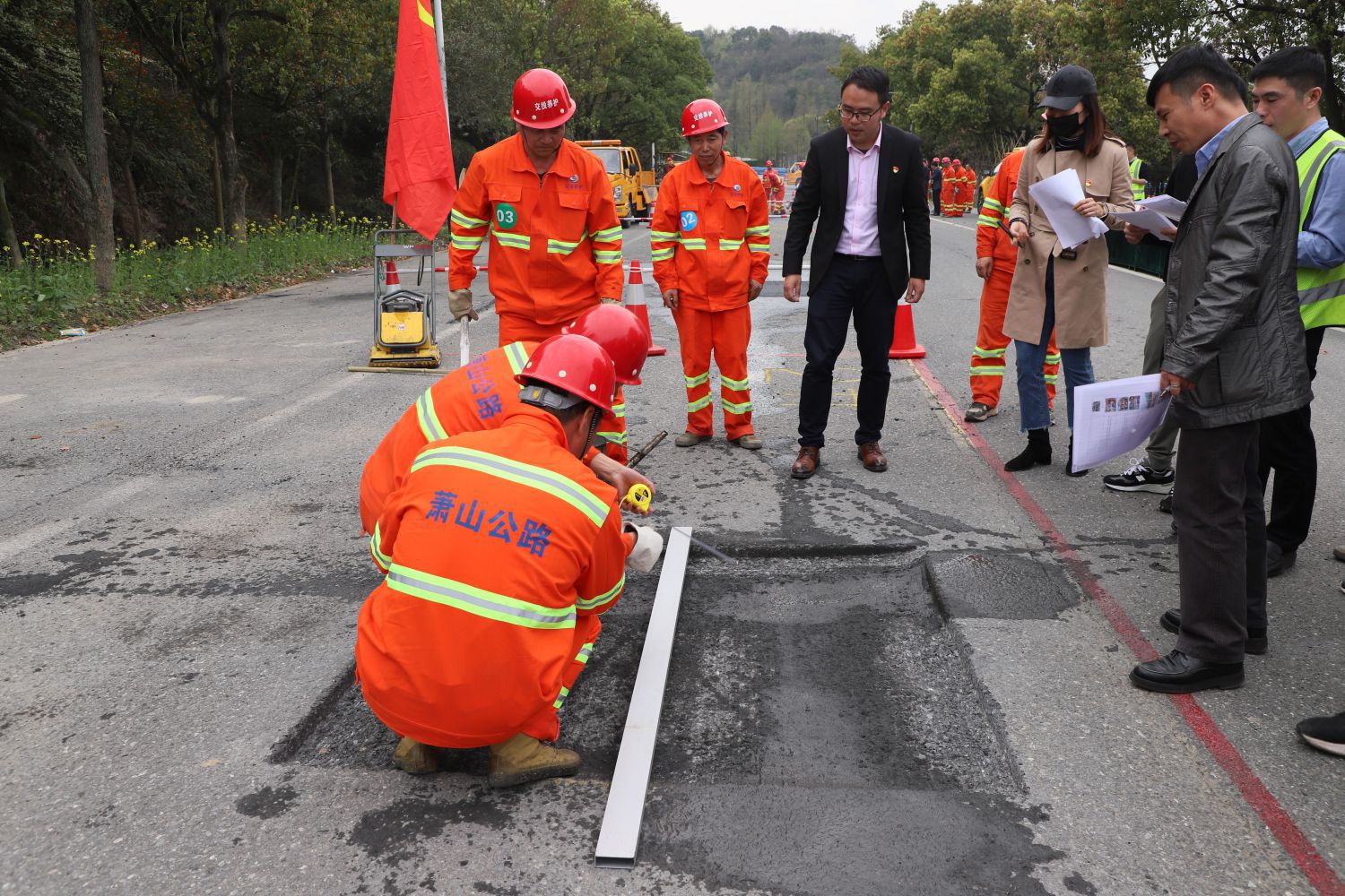 為響應(yīng)“紅色領(lǐng)杭·奉獻(xiàn)亞運(yùn)”大考大賽號(hào)召,進(jìn)一步發(fā)揮基層黨組織和共產(chǎn)黨員戰(zhàn)斗堡壘作用與先鋒模范作用,也為進(jìn)一步激發(fā)基層養(yǎng)護(hù)工人“學(xué)技術(shù)、鉆業(yè)務(wù)、提技能”的積極性,努力鍛造一支業(yè)務(wù)精、能力強(qiáng)、作風(fēng)好的公路養(yǎng)護(hù)隊(duì)伍,實(shí)現(xiàn)“席地而坐”、“杯水不溢”的通行環(huán)境,結(jié)合公司2023年“2430”黨建品牌創(chuàng)建行動(dòng)計(jì)劃安排,3月28日下午,杭州蕭山交投公路養(yǎng)護(hù)服務(wù)有限公司在G235與S307一段封閉道路內(nèi)組織開(kāi)展了第一屆坑槽修復(fù)技能競(jìng)賽。公司班子領(lǐng)導(dǎo)參加。