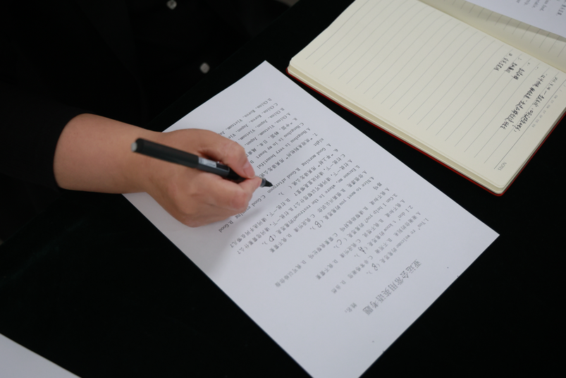 地鐵業(yè)務(wù)部員工曹銘哲帶領(lǐng)全體黨員學(xué)習(xí)了亞運(yùn)常用英語(yǔ)20句,并在課后進(jìn)行了相關(guān)英語(yǔ)知識(shí)考試。