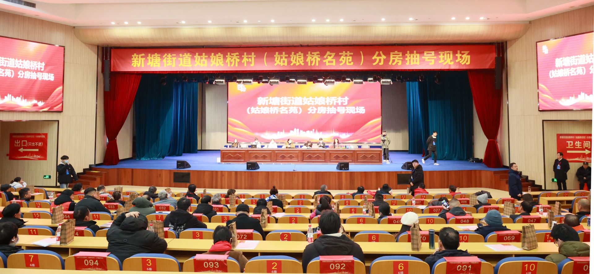 對于姑娘橋村人而言,這注定是個難忘的周末。雖是寒潮來襲、氣溫驟降,但零下4度的嚴(yán)寒也抵擋不住他們似火的熱情。一大早,按捺不住激動心情的村民已陸續(xù)抵達(dá)場外等候,現(xiàn)場一片喜氣洋洋。工作人員認(rèn)真核驗(yàn)證件、維持秩序,引導(dǎo)各位村民就座,分房工作有條不紊地進(jìn)行。現(xiàn)場還貼心地搭建了群眾休息區(qū),為等待的人群提供一方溫暖天地。