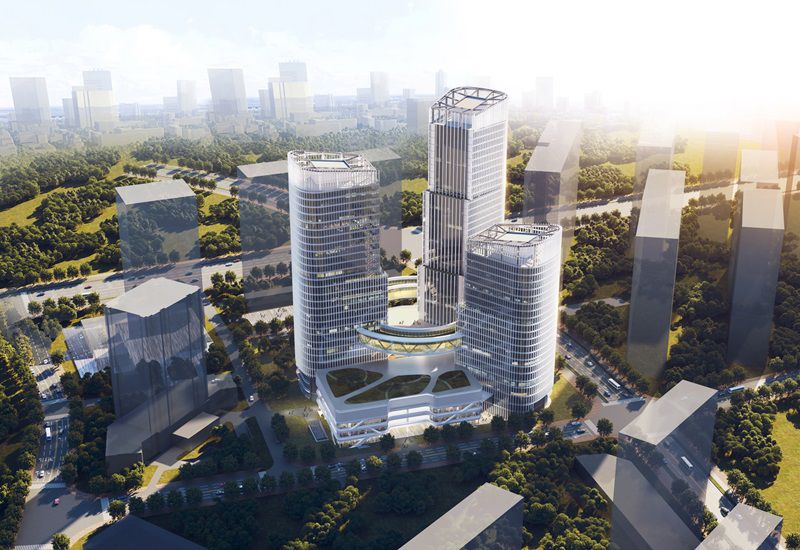 市北客運中心項目位于錢江世紀城,西北至規劃經十八路,東南至飛虹路,西南至永暉路,東北至規劃緯十六路。項目總用地面積約29566平方米,概算投資14.5億元,總建筑面積約220580平方米。項目是集商業、商務、公共交通場站于一體的綜合體建筑,由兩棟超高層塔樓、一棟高層塔樓、商業裙房以及一個公交場站組成。