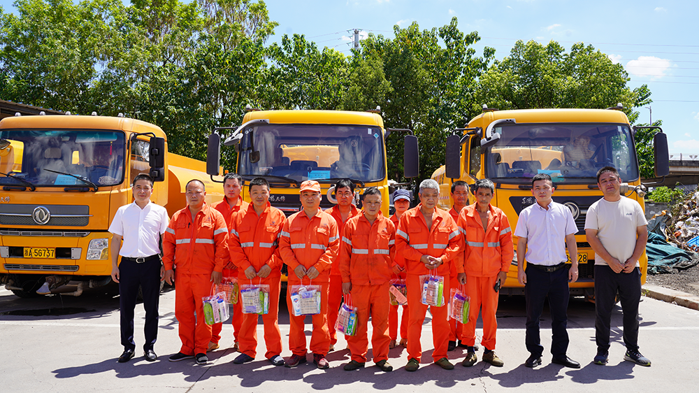 交投養護公司領導班子詳細了解一線養護人員的工作生活情況,對他們不畏酷暑、盡職盡責的辛勤工作和敬業精神表示感謝,并為他們送上高溫慰問品,叮囑大家在高溫環境下注意防暑降溫。