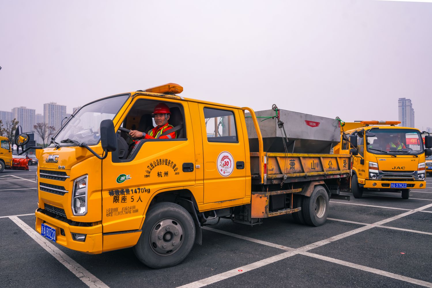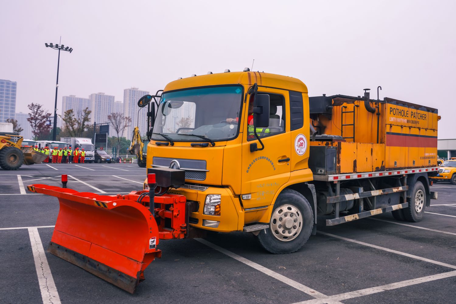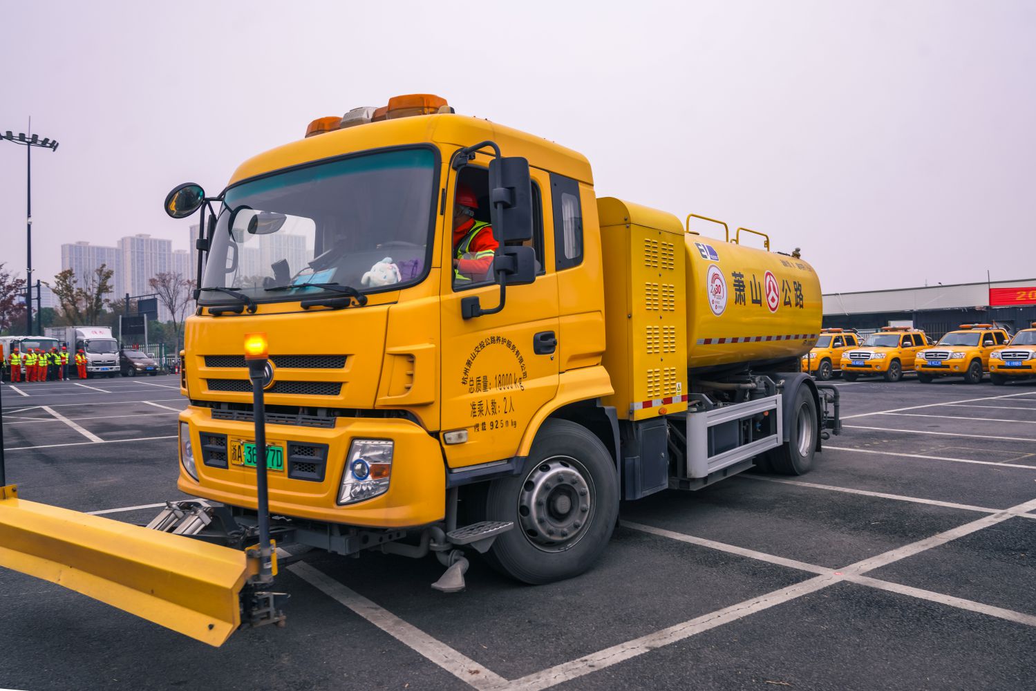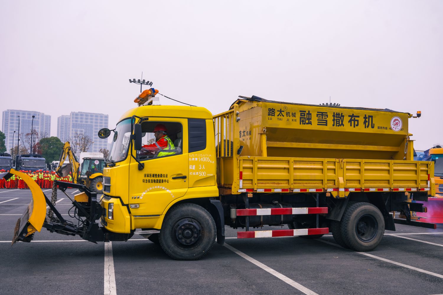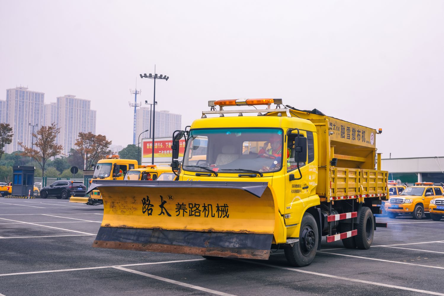 大型撒鹽車,載鹽量5噸,作業(yè)寬度5米,作業(yè)時(shí)長(zhǎng)1.5小時(shí),主要用于保障主干防雪抗冰凍。