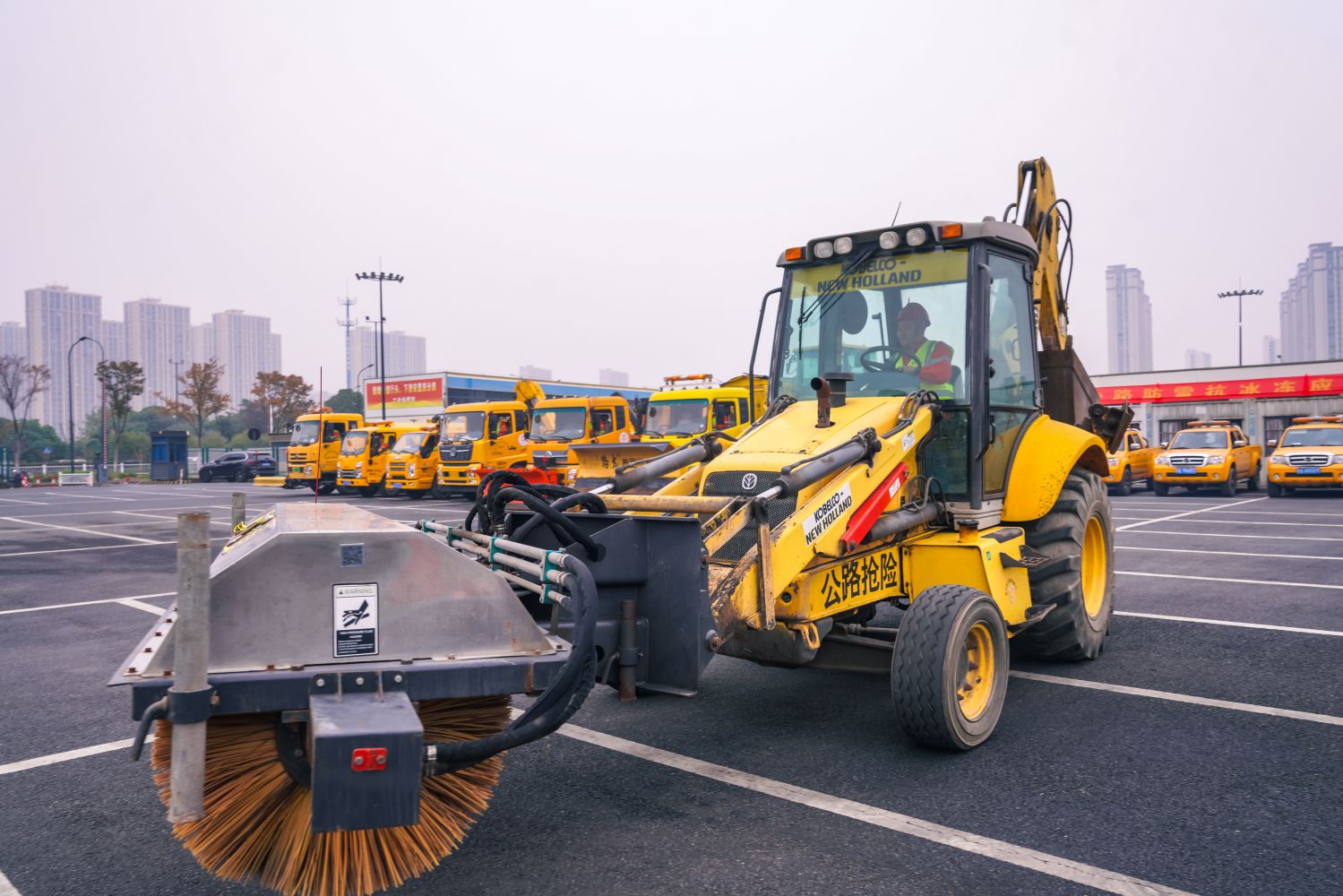挖掘裝載機(jī),俗稱“兩頭忙”,該設(shè)備同時(shí)具備挖掘與裝載功能,在降雪冰凍天氣,可換裝掃雪器,利用設(shè)備為多功能性,用于道路掃雪除冰。