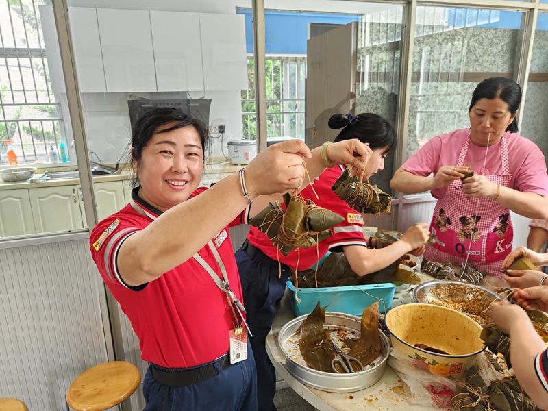 除了手工藝品,公司和站點還精心準(zhǔn)備了新鮮豐富的食材,員工們利用休息時間聚在一起制作端午粽子,分享節(jié)日到來的喜悅,大家由衷感嘆自己包的粽子吃起來格外香糯。