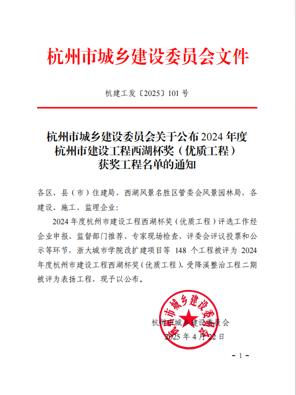 近日,根據《杭州市建設工程西湖杯獎(優質工程)獲獎工程名單的通知》,由集團下屬城區建設公司承建的北干街道山口單元B-06地塊建設公共租賃用房工程、北干街道城北公共租賃用房建設工程、義橋鎮山后村城中村改造安置房均被評為——2024年度杭州市建設工程西湖杯獎(優質工程)。