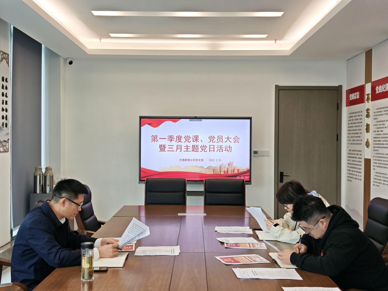 3月31日上午,交通新鎮(zhèn)公司黨支部開(kāi)展第一季度黨課、黨員大會(huì)暨三月份主題黨日活動(dòng)。會(huì)議由黨支部書(shū)記邵發(fā)強(qiáng)主持,全體黨員參加。