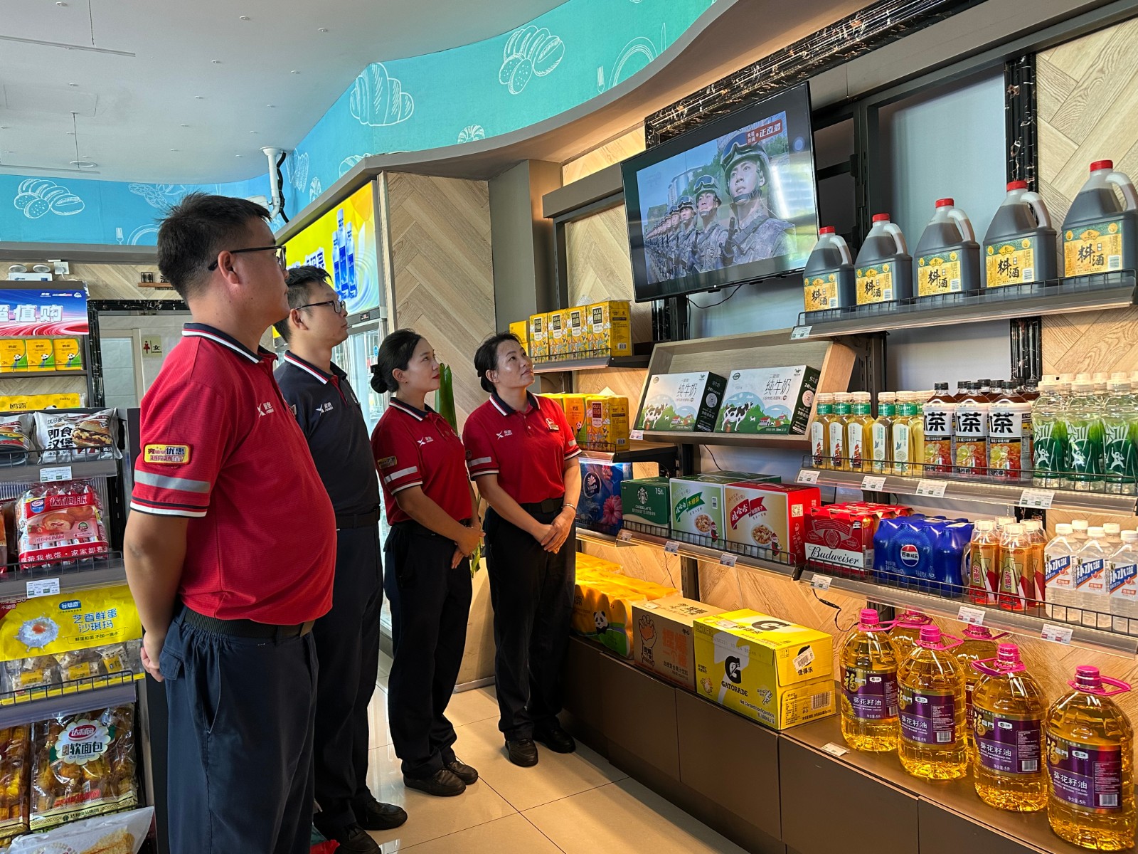 9月3日,中國人民抗日戰(zhàn)爭暨世界反法西斯戰(zhàn)爭勝利80周年閱兵式在北京天安門廣場隆重舉行。交投能源公司積極組織行政各部室及各基層加油站點員工集中觀看閱兵盛況,共同回顧崢嶸歲月,感悟民族精神,激發(fā)愛國情懷。 上午9時,閱兵式正式開始。伴隨著莊嚴的國歌聲,大家凝神屏息,注視著屏幕中徒步方隊、裝備方隊和空中梯隊的威武行進。當(dāng)國產(chǎn)現(xiàn)役主戰(zhàn)裝備、無人智能作戰(zhàn)力量等新型裝備亮相時,現(xiàn)場響起熱烈掌聲。大家紛紛表示,閱兵式展現(xiàn)的國防現(xiàn)代化成就令人振奮,尤其是“三結(jié)合”武裝力量布局和聯(lián)合指揮新模式,彰顯了新時代強軍事業(yè)的蓬勃活力。 看著閱兵現(xiàn)場特別邀請了抗戰(zhàn)老戰(zhàn)士、烈士遺屬等觀禮的畫面,大家深受觸動。一名基層站點負責(zé)人感慨:“抗戰(zhàn)精神是中華民族的寶貴財富。作為能源戰(zhàn)線的一員,我們將以先烈為榜樣,將團結(jié)奮斗的抗戰(zhàn)精神融入銷量保衛(wèi)戰(zhàn)的實際行動中。”