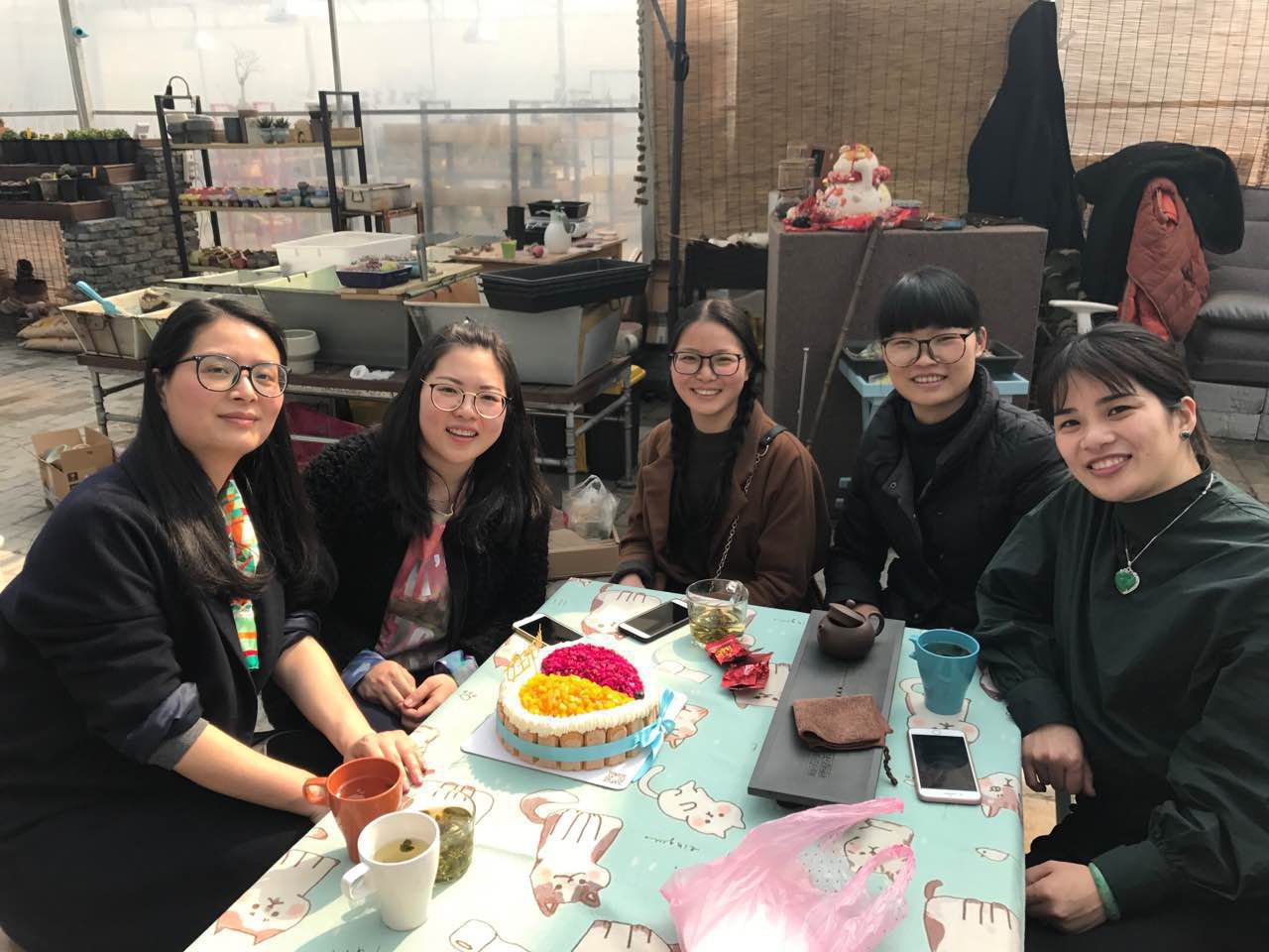 公司女職工在多肉植物園內進行了一場輕松愉快的茶話會。