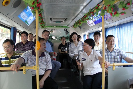 領(lǐng)導(dǎo)們首先聽取了707路專線的情況匯報(bào),對(duì)專線的發(fā)展經(jīng)過和建設(shè)成果給予充分肯定;隨后乘坐707巾幗文明號(hào)公交車體驗(yàn)湘湖專線服務(wù),導(dǎo)乘員向領(lǐng)導(dǎo)們介紹了線路途經(jīng)的標(biāo)志性建筑和景點(diǎn),使他們對(duì)707專線的優(yōu)勢(shì)和特色有了深刻感受,并對(duì)此次參觀給予較高評(píng)價(jià)。
