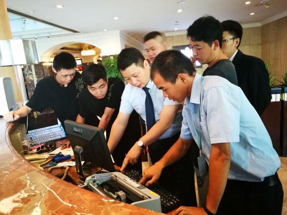 為了方便金馬飯店的旅客乘坐機場大巴,并拓展蕭山長運公司的機場班線業務,前幾日,蕭山長運客運分公司經理吳俊杰、副經理徐法明與金馬飯店禮賓部負責人王學良溝通協商后,簽訂了機場班線運營協議,隨后,長運公司技術部對售票系統的運行進行了充分調試。