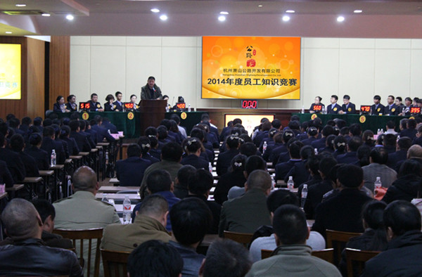 為進一步加強企業文化建設,提高全員思想素質、業務能力和安全生產意識,12月13日下午,公路開發公司在區交通運輸局3樓會議室舉辦2014年度員工知識競賽。集團公司部室全體人員、所屬單位中層副職以上干部等400余人觀摩此次比賽。