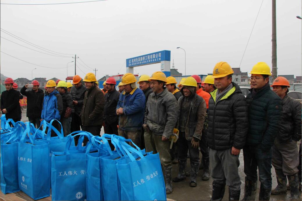 1月24日,在臘八節(jié)來(lái)臨之際,區(qū)總工會(huì)黨組副書記、副主席胡國(guó)榮一行慰問杭州港蕭山港區(qū)義橋作業(yè)區(qū)建設(shè)者,集團(tuán)工會(huì)副主席來(lái)宗德,交通建管公司工會(huì)主席王國(guó)芳,浦陽(yáng)江開發(fā)公司黨支部書記王光明陪同參加慰問活動(dòng)。活動(dòng)現(xiàn)場(chǎng),胡主席向這些奮斗在一線的工人們表示感謝,并親手將慰問品交到了工人們的手上。雖然下著小雪,但工人們的臉上洋溢著溫暖的笑容,過年的氣氛在工地上蔓延。工人們說(shuō),這一袋慰問品中承載了許多的溫暖和感動(dòng),讓他們感受到了總工會(huì)和公司的關(guān)心與溫情,他們會(huì)更加努力,為工程建設(shè)、為三重一新立功競(jìng)賽奉獻(xiàn)力量。