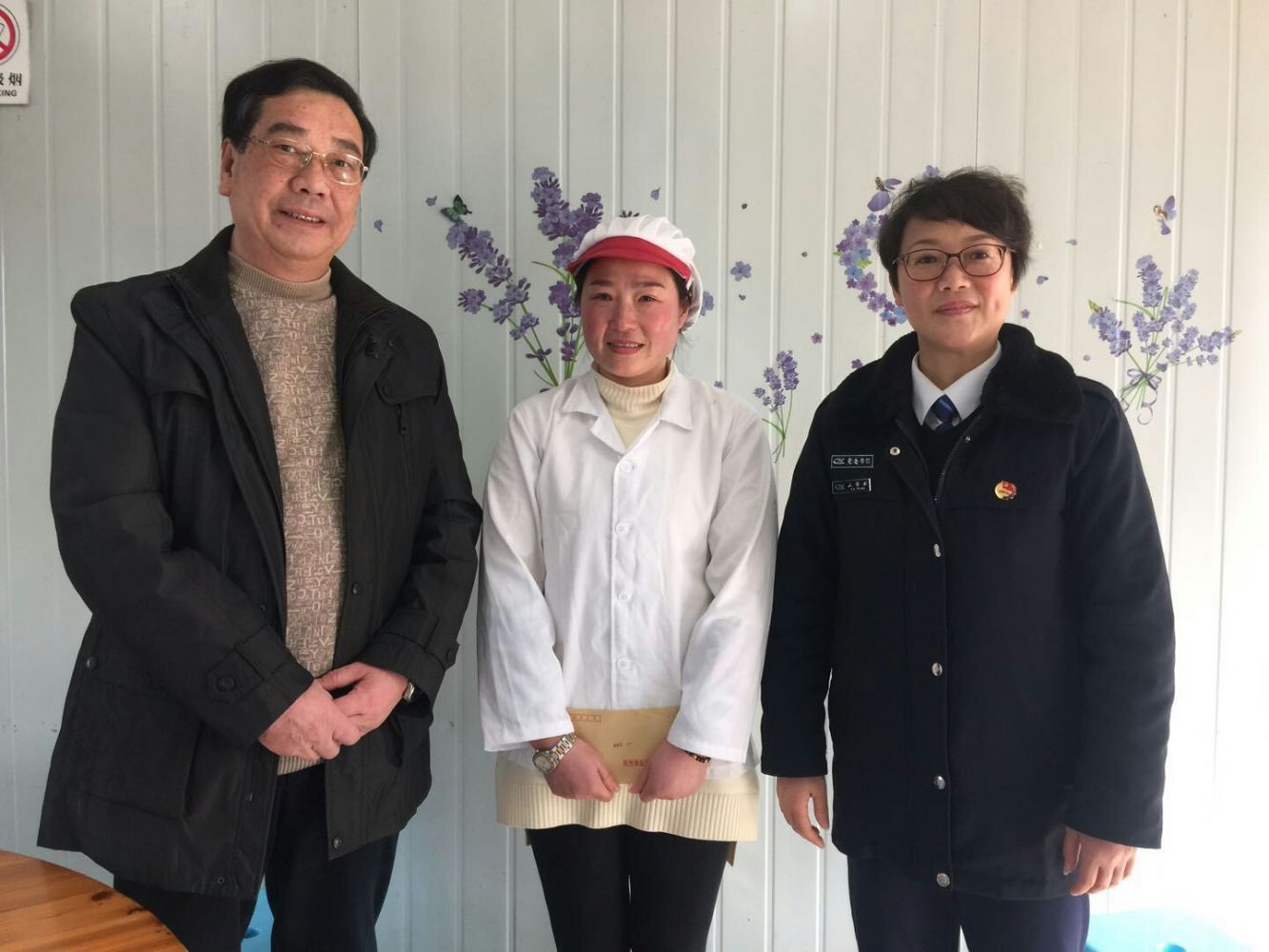 來主席與鄭愛萍進行了親切交談,進一步詢問她的家庭情況和生活工作狀況,充分肯定了她在本職崗位上為公司所作出的貢獻,鼓勵她要樹立信心,振奮精神,樂觀生活,認真工作,同時轉達了集團公司對她的關心和問候,并送上慰問金。