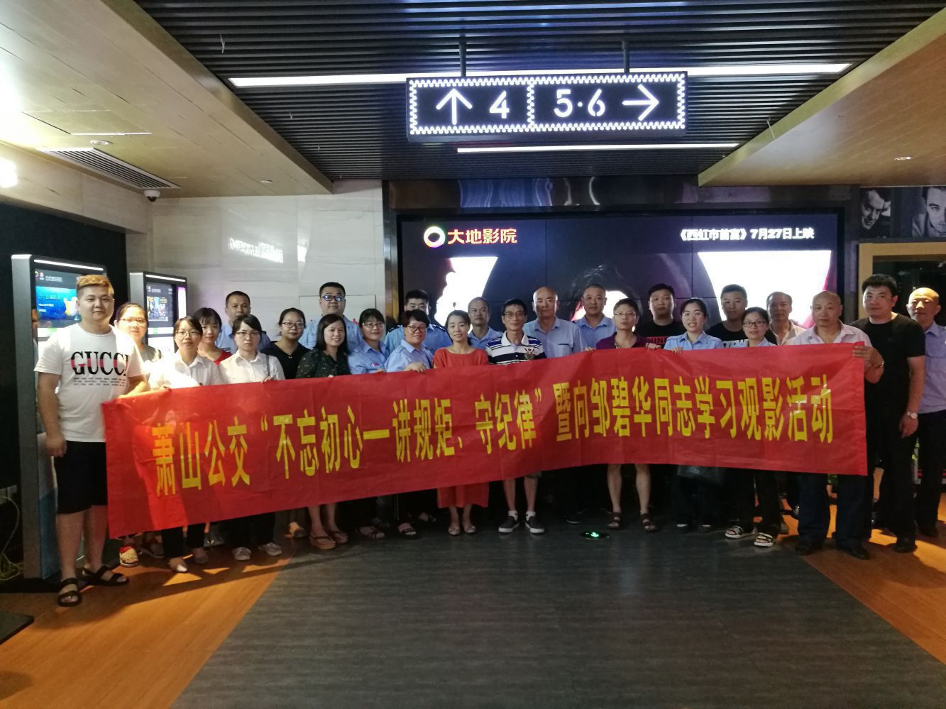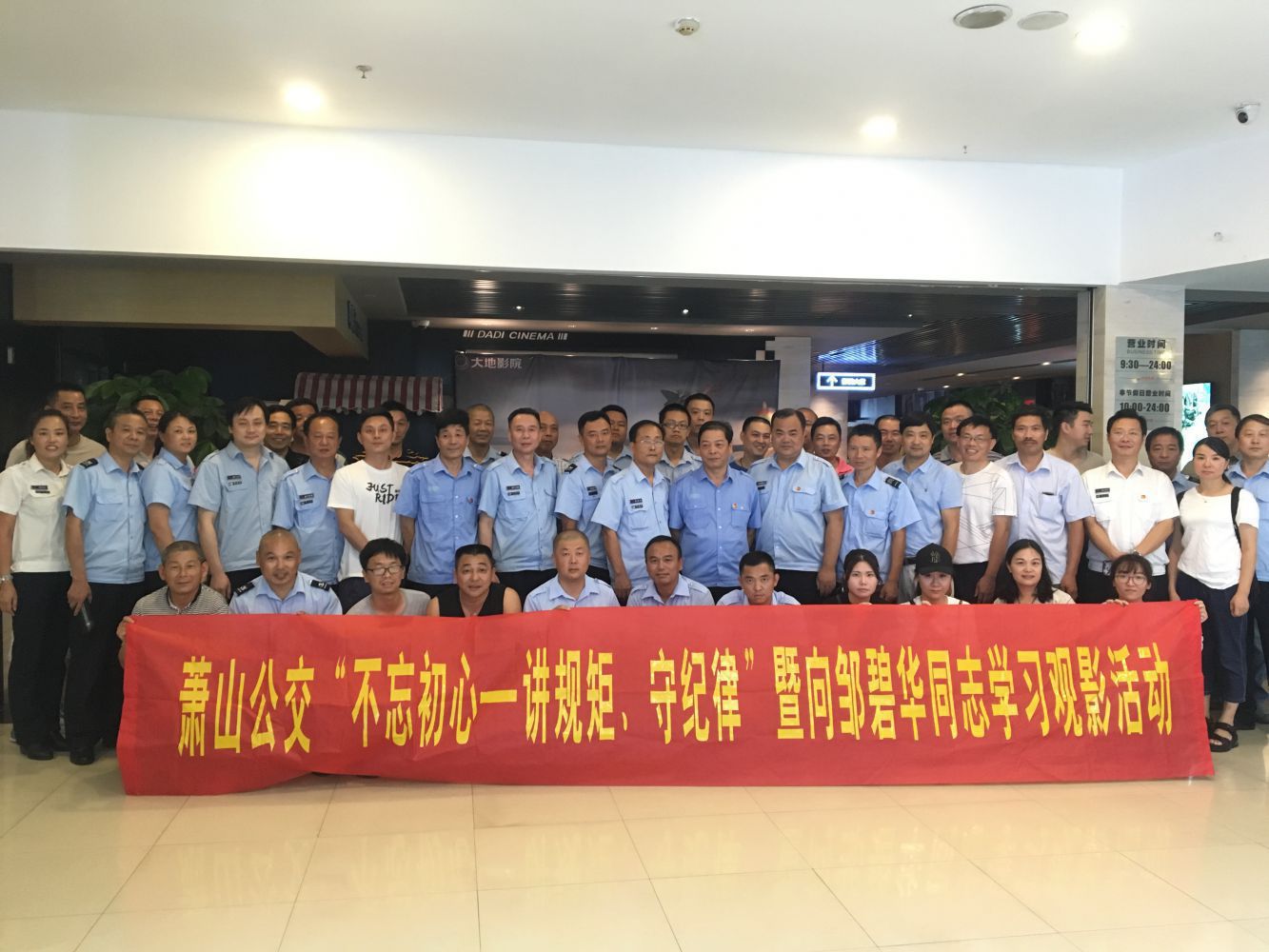 為深入貫徹落實習近平總書記對鄒碧華同志先進事跡的重要指示精神,持續推進“兩學一做”學習教育常態化制度化,7月20日-28日期間,蕭山公交黨委以第三季度企業文化活動為載體,分四批組織直屬12個支部的黨員干部開展“不忘初心——講紀律、守規矩”暨向鄒碧華同志學習觀影活動,共計130余人參與活動。