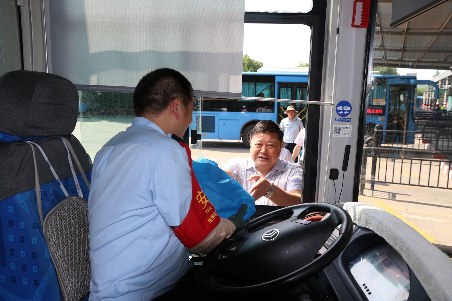 7月26日上午,交投集團(tuán)黨委書記、董事長祝關(guān)翔等領(lǐng)導(dǎo)一行蒞臨公交公司通惠路公交站慰問高溫下奮戰(zhàn)在一線的公交員工。公司吳根法總經(jīng)理、王黎洪書記等班子成員陪同。祝關(guān)翔董事長與公交司機(jī)、站員、保安、后勤保障人員一一握手,送上夏季清涼用品等慰問品,并親切的叮囑大家要做好防暑降溫措施,合理安排休息,保持良好的精神狀態(tài),確保高溫下行車安全。集團(tuán)領(lǐng)導(dǎo)的到來,讓公交一線員工倍感清涼與振奮,司機(jī)們紛紛表示將牢記董事長的叮囑,確保安全行車。