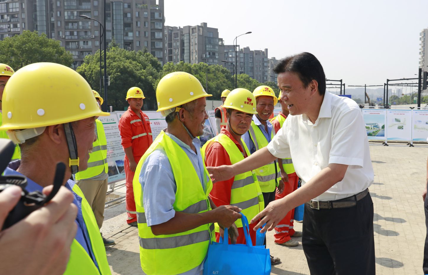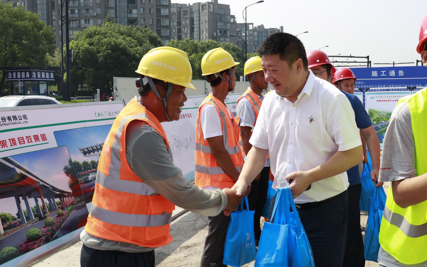 區(qū)政協(xié)主席洪松法、副區(qū)長吳煒煒一行到義橋作業(yè)區(qū)項目施工現(xiàn)場,對一線工人進行了高溫慰問,發(fā)放了夏季防暑慰問品,并叮囑大家做好防暑降溫措施,牢記施工安全。集團黨委副書記、副總經理虞國燦,建管公司、浦陽江公司負責人參加慰問活動。