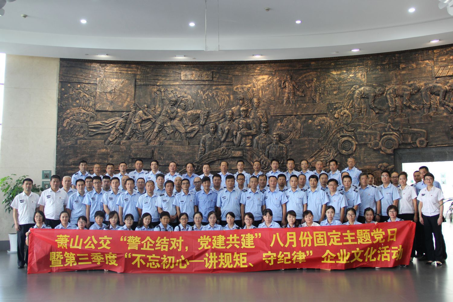 此次活動(dòng)旨在以建黨97周年系列活動(dòng)為契機(jī),以“不忘初心、牢記使命”教育為抓手,通過(guò)共學(xué)、共做、共促,提升單位黨建工作水平,實(shí)現(xiàn)取長(zhǎng)補(bǔ)短、互促共贏、資源共享;是蕭山公交鞏固“兩學(xué)一做”學(xué)習(xí)教育成果的重要舉措,也是深化警企合作、提升黨建工作水平、打造“藍(lán)色廉潔型”公交的一個(gè)創(chuàng)舉。今后,雙方將進(jìn)一步探索警企黨建資源整合新思路、新模式,發(fā)揮各方優(yōu)勢(shì),做到有機(jī)結(jié)合,將政治優(yōu)勢(shì)轉(zhuǎn)化為發(fā)展優(yōu)勢(shì),警企攜手開(kāi)創(chuàng)新輝煌!